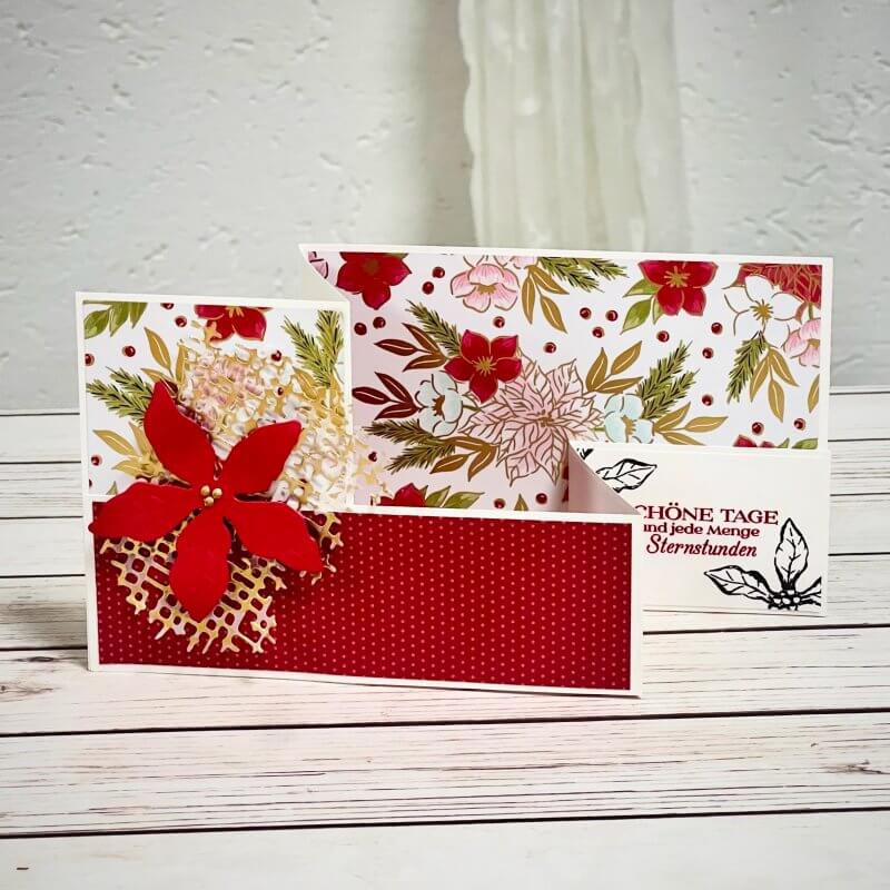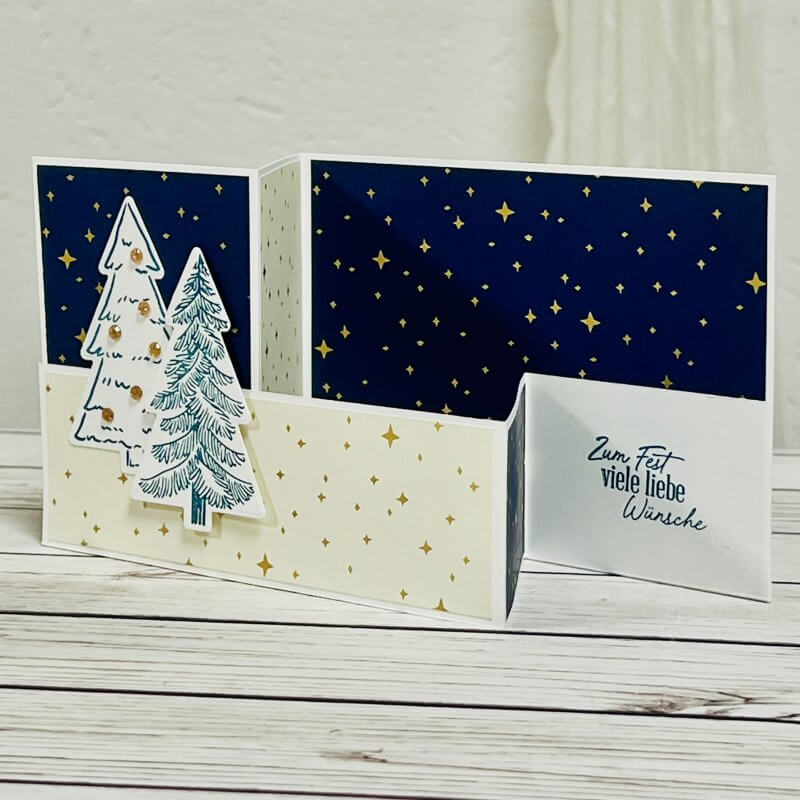 In der Vorweihnachtszeit ist mir im Jahr 2025 etwas sehr unerwartetes passiert: Das Fernsehen hat angefragt, ob ich vor der Kamera basteln will! Nachdem der erste Schock überwunden war, habe ich mich sehr gefreut, dass das Kamerateam in meinem Bastelkeller vorbei kam und wir einige Ideen aufgenommen haben. Eine davon war eine diese Z-Fold-Card.